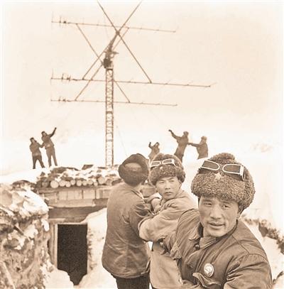 1967年8月12日,第一批甘巴拉官兵架设雷达天线。资料图片