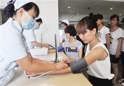 今天(12日)上午,我省女兵体格复检工作正式开始。200多名经过网上报名筛选的适龄应征女青年在省征兵办统一安排下,来到解放军第187医院体检站接受身高体重、妇科、吸毒检测等18个项目的检查。