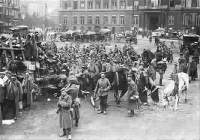 ■ 1914年8月,进入比利时列日城的德国马斯河集团军