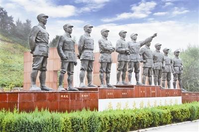 平型关大捷纪念馆前将帅广场上矗立的当时参战主要将领的雕像。 赵洪波摄