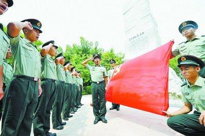 为纪念中国人民抗日战争胜利69周年,昨日,厦门警备区某侦察大队组织官兵来到日寇侵犯厦门登陆遗址,开展“铭记抗战历史,担当强军使命”活动。官兵们回顾历史,悼念在抗战中牺牲的革命先烈,并举行入党宣誓。(本报记者 李晓平 通讯员 吴振洲 摄影报道)