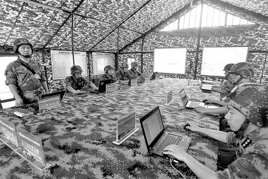 16日,陆军某预备役师在室内进行指挥演练。当日,该师开展作战演练,在几天时间内将先后进行官兵快速动员、防卫星侦查、对敌防空等科目的演练,进一步提高作战能力。
