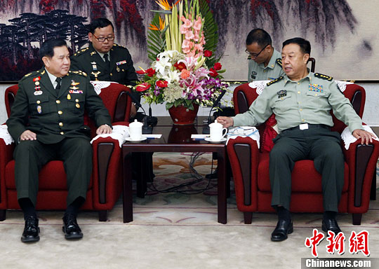 9月19日下午,中央军委副主席范长龙,在北京八一大楼会见来访的泰国副总理兼外交部长、泰国武装部队最高司令塔纳萨。中新社发 宋吉河 摄