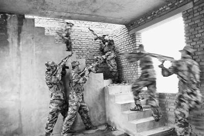 山东省泰安市岱岳区人武部日前组织民兵应急分队开展反恐维稳训练,着力提升民兵处置突发事件的能力。图为他们组织民兵进行定点围捕训练。 王 鹏摄