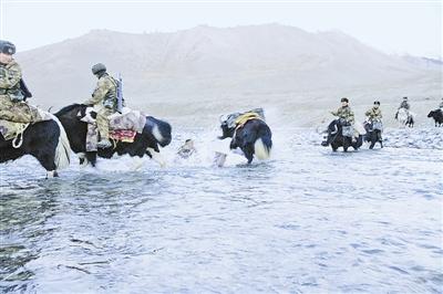 新疆军区边防战士骑牦牛巡逻 跨越“死亡线”(图)