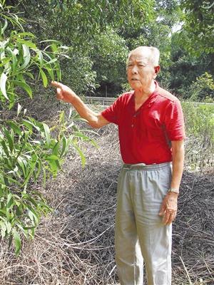 东纵老战士钟声手指土山,告诉记者纪念碑所在之地。