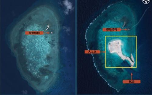 中国大陆一直在赤瓜礁进行人工岛作业。今年6月左右,中国又在永暑礁进行填海造岛,计划在那里建设大型基地。同时,中国船只还出入于南薰礁和华阳礁。最近判明,中国已经将南薰礁变成了人工岛,该岛与部署了台湾航空设施的太平岛相邻。