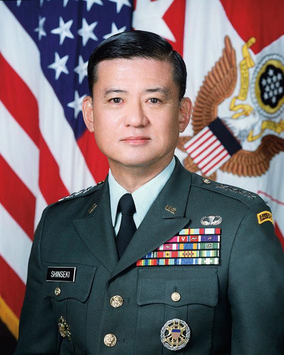 打开日裔军官军阶“突破口”的,是西点军校毕业生埃里克·新关,他上世纪90年代成为美国第一位日裔将军。新关1942年出生在夏威夷的考艾岛,是第三代日裔美国人。越战时期,新关作为前沿炮兵观察员参战,因触雷致一只脚残疾,伤愈后则一路青云直上,先后担任过驻德美军第三步兵师一系列官职。1994年,新关出任“大红一师”——第一机械化步兵师师长,获少将军衔。两年后,他被提拔为陆军副参谋长并晋升中将。1999年6月,新关成为美国第34任陆军参谋长,荣升为上将。2003年,因和时任国防部长拉姆斯菲尔德意见不合,新关被迫提前退役。