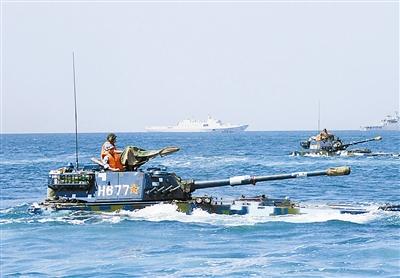 中国海军陆战队两栖突击车广东海域冲锋(图)