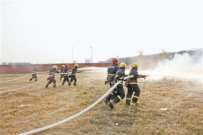 天津人防专业队在接受检验评估时,进行消防救援演练。 岳 丽摄