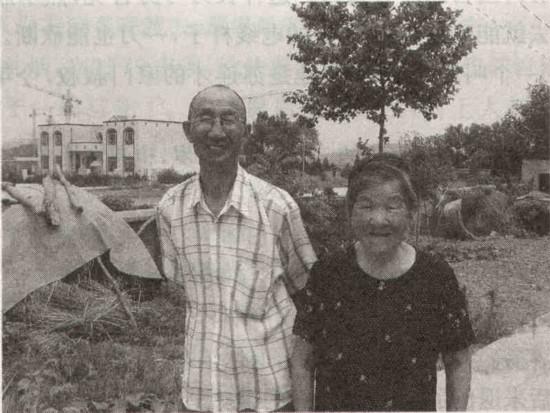 图为南京大屠杀幸存者白大洲(左)