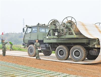 二炮某部演练重型机械化路面铺设 铺路车亮相(图)