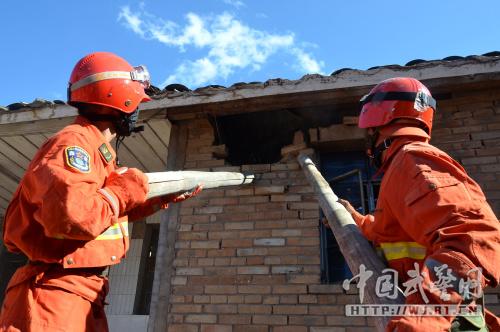 武警森林官兵正在拆除危墙