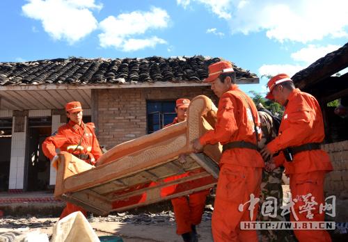 “一、二、三——加油,一、二、三……”12月8日,武警普洱森林支队夏进荣支队长带领26名官兵,正在景谷县迁毛村石庄乡村小组李逢良村民家的危房下排险。李大叔感激地说:“只要党、政府和人民子弟兵,即使有再多的余震,我们也不会感到恐惧,虽然房子不能住,但心里觉得踏实。”