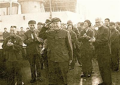 1980年6月5日,钱学森登上中国航天远洋测量船看望船员。资料照片