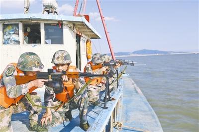 广东江门新会民兵海上持机枪瞄准训练(图)
