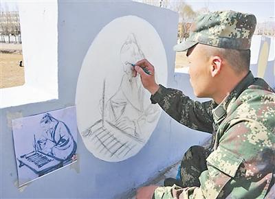 随即,这面图文并茂的“文化墙”吸引了众多官兵,大家感到这道“文化菜”颇合胃口,纷纷称赞美术“达人”们的画技。图为战士在作画。王 鑫、王士刚 摄影报道