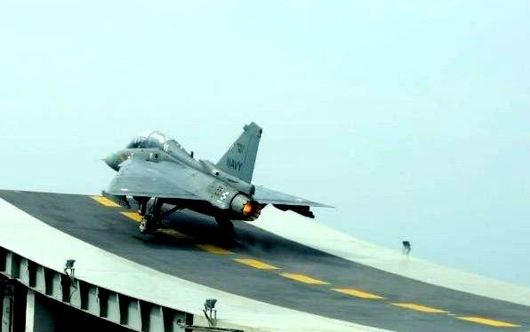 资料图:印度国产舰载机首架原型机从岸基实验台上起飞瞬间