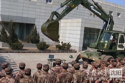 解放军班长秀绝活:开挖掘机操作键盘打字(图)