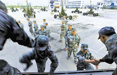 5月16日,上海某预备役高炮师召开转服现役动员誓师大会,近万名预备役官兵及1600多件通用装备集结完毕宣誓出征。