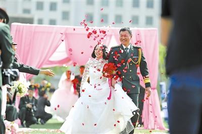 二炮某基地18对新人举行浪漫集体婚礼(图)