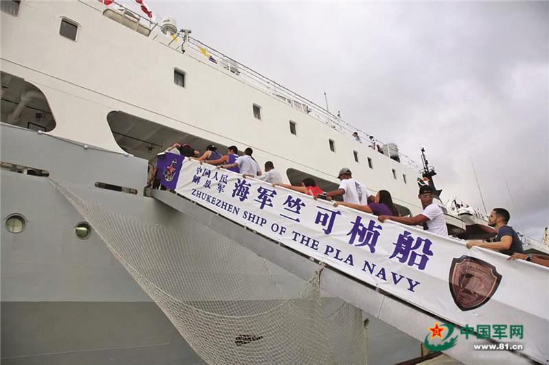 开放日,厄瓜多尔当地华侨登上竺可桢船参观。