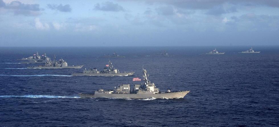 资料图:日美战舰在关岛组成联合舰群进行实战演习。。
