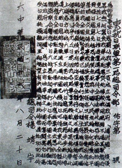 东北抗日联军的布告。(资料图)