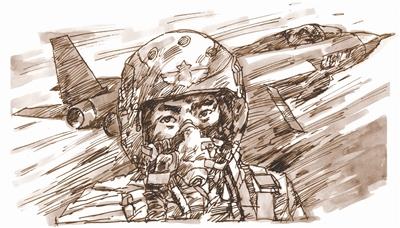 披着硝烟走下战鹰,他拎着头盔,跨着大步走向空战评估室,不时甩甩酸痛的手臂。