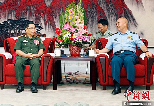 7月8日,中央军委副主席许其亮在北京会见老挝国防部长森暖·赛雅拉一行。中新社发 宋吉河 摄