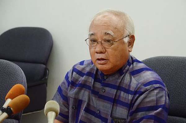 宫古岛市市长下地敏彦在记者会上(网页截图)