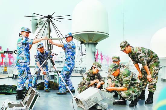 总参某电磁频谱管理中心仿真室技术人员赴海军某部,开展用频装备频谱参数核查和电磁环境采集。宋吉河/摄