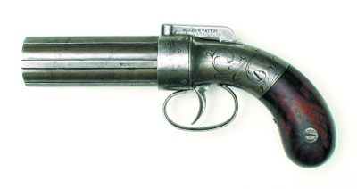 首先出现的击发式手枪就是外形怪异的、由美国人伊桑·艾伦设计的胡椒盒手枪,即多管旋转的击发手枪。接着,英国和欧洲大陆也开始生产此类胡椒盒手枪。