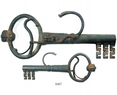 这种奇怪的微型手枪其历史可以追溯到17世纪。它是个简易的一次性火枪。只要填满火药,万一在开门时遇到麻烦,狱警们就能用这个小小的钥匙枪应付一下“突发事件”。如今大多数狱警在不看守犯人时,就不佩带枪支。但是在过去,巡逻的狱警需要带些东西以预防不测,尤其是当他们需要用两只手才能完成某件任务的时候——比如拿钥匙开门。