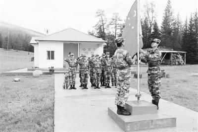 哈亚尔哨所正在举行升国旗仪式。 蔡 川摄