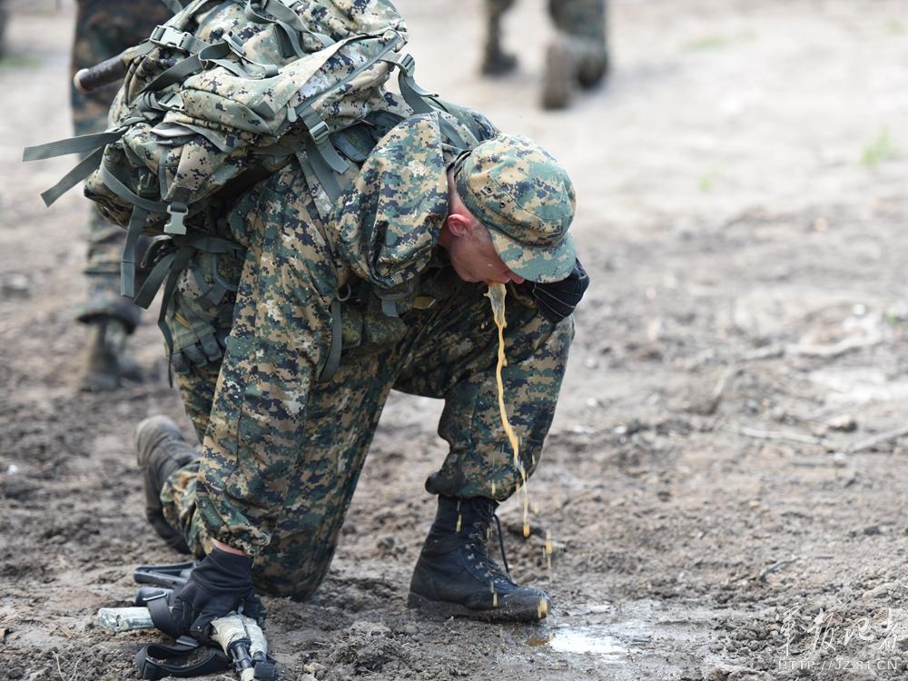 俄军侦察兵比赛后累得呕吐不止