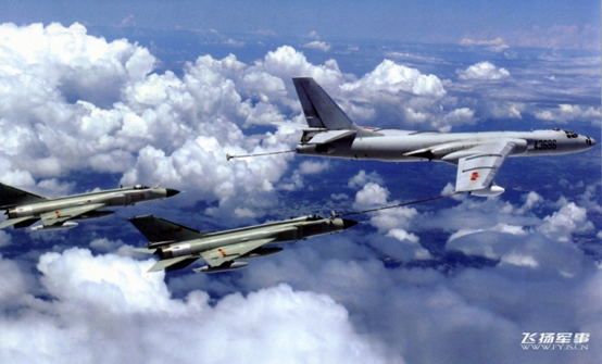 根据美国空军的观察和空中加油机部队的研究,中国的典型编组方式是两架轰油-6(H-6U)支援12架歼八D战斗机。这12架歼-8D分为三个四机编队,可以在1200公里内分别建立3个空中警戒圈保护加受油机。战斗机进行空中加油的最佳空域是在其作战半径的尽头附近,而歼-8D的作战半径大约是800公里。这样即使空中加油作业万一失败,也完全可以依靠机内剩余油料安全返回基地。如果空中加油作业能够顺利进行,歼-8D在接近其预定警戒空域时即可完成受油,随即直接进入阵位,这时空中加油机就可以返回基地了。