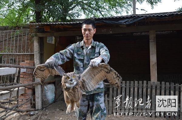 解放军战士救治国家二级重点保护动物雕鸮(图)