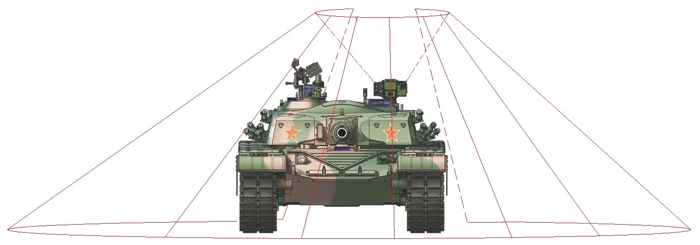 主动防御系统通过主动反应式装甲能为坦克提供200-270度,半径约为20-30米的“防御圈”