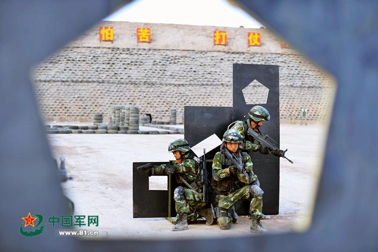 新疆利剑突击队装配拐弯枪夜视仪全息瞄具(图)(12)