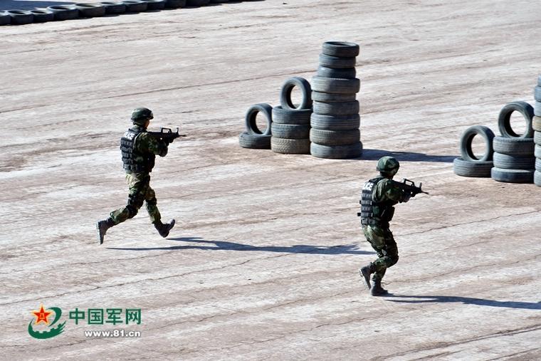 新疆利剑突击队装配拐弯枪夜视仪全息瞄具(图)(4)