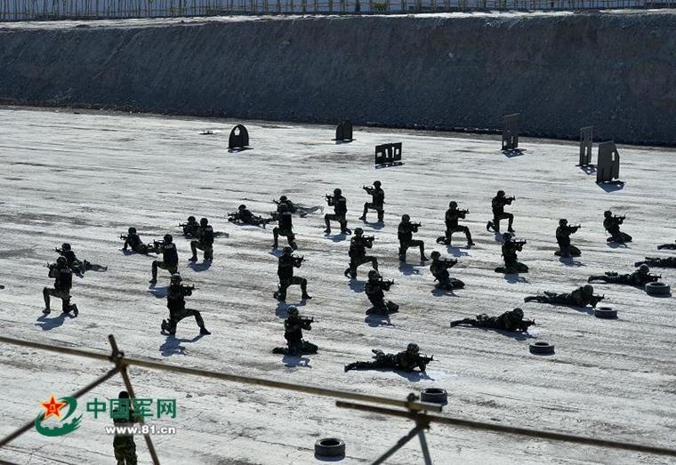 新疆利剑突击队装配拐弯枪夜视仪全息瞄具(图)(7)
