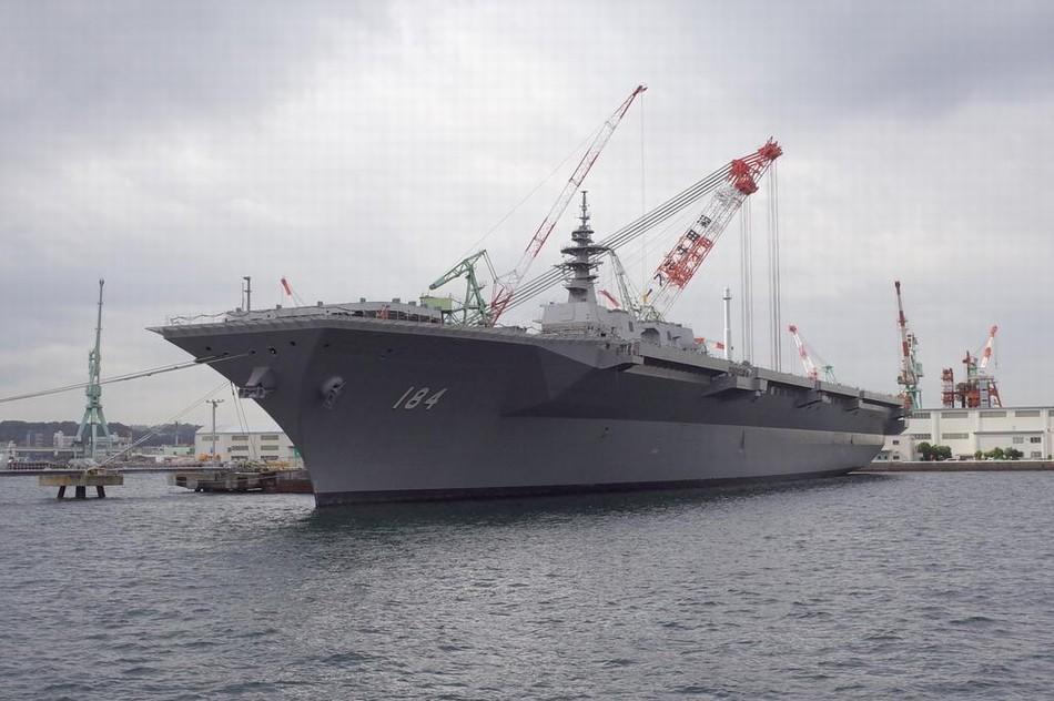 横滨船厂码头停靠的日本海上自卫队最新型准航母DDH-184“加贺”号,该舰预计2017年3月服役。