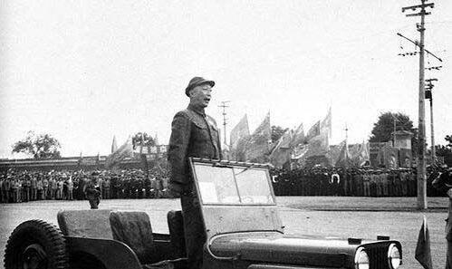 1949年10月1日,华北军区司令员兼京津卫戍司令员、阅兵总指挥聂荣臻向朱德总司令报告参加开国大典阅兵式的受阅部队准备就绪。