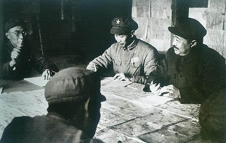 1950年1月,西南军区司令员贺龙在成都开会讨论进军西藏问题。
