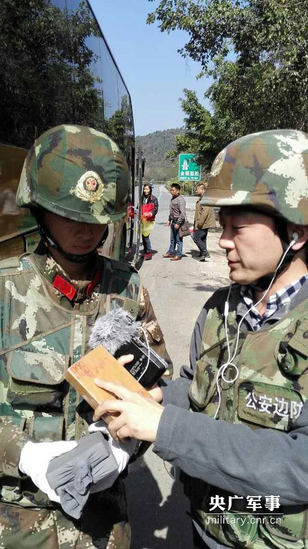 央广军事记者王亮(右)现场采访缉毒官兵。刘加勇摄
