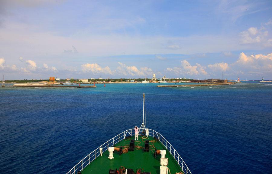 “海巡21”船抵达西沙群岛永兴岛,也是三沙市政府所在地。