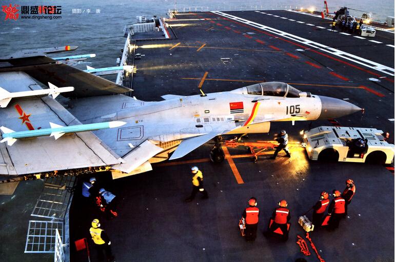 近日,中国海军辽宁舰最新的甲板训练画面曝光,可以看到歼-15舰载机挂弹训练。