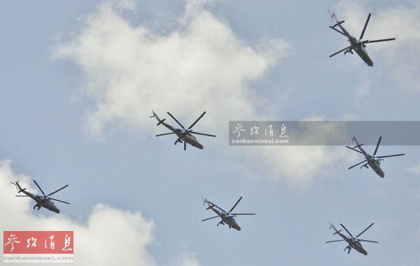资料图:2011年阅兵式上的阿空军米-24武直编队。