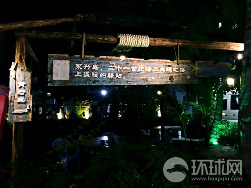 在岛上,随处可见迷彩色的炮楼,有些被废弃,有些有百姓居住。最出乎意料的是,在一家装饰颇有几分情调的美食园里,《环球时报》记者看到有两格展示栏,里面泛黄的照片主题写着“纪念西沙自卫反击战胜利41周年”,重现的是绿军装、红领章,斗志昂扬的脸庞,还有浪花四溅的反潜演练。